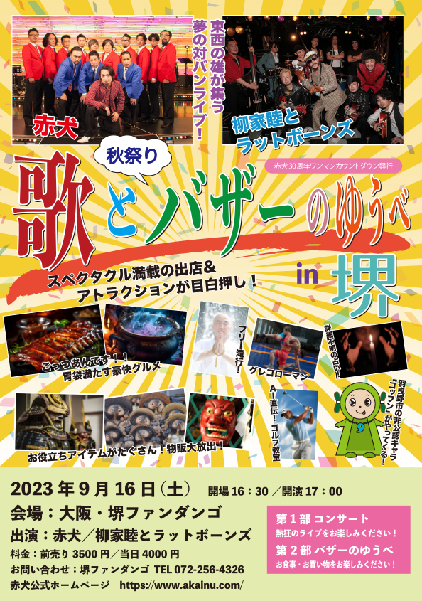 【2023年9月16日 赤犬 堺ファンダンゴ公演のお知らせ】